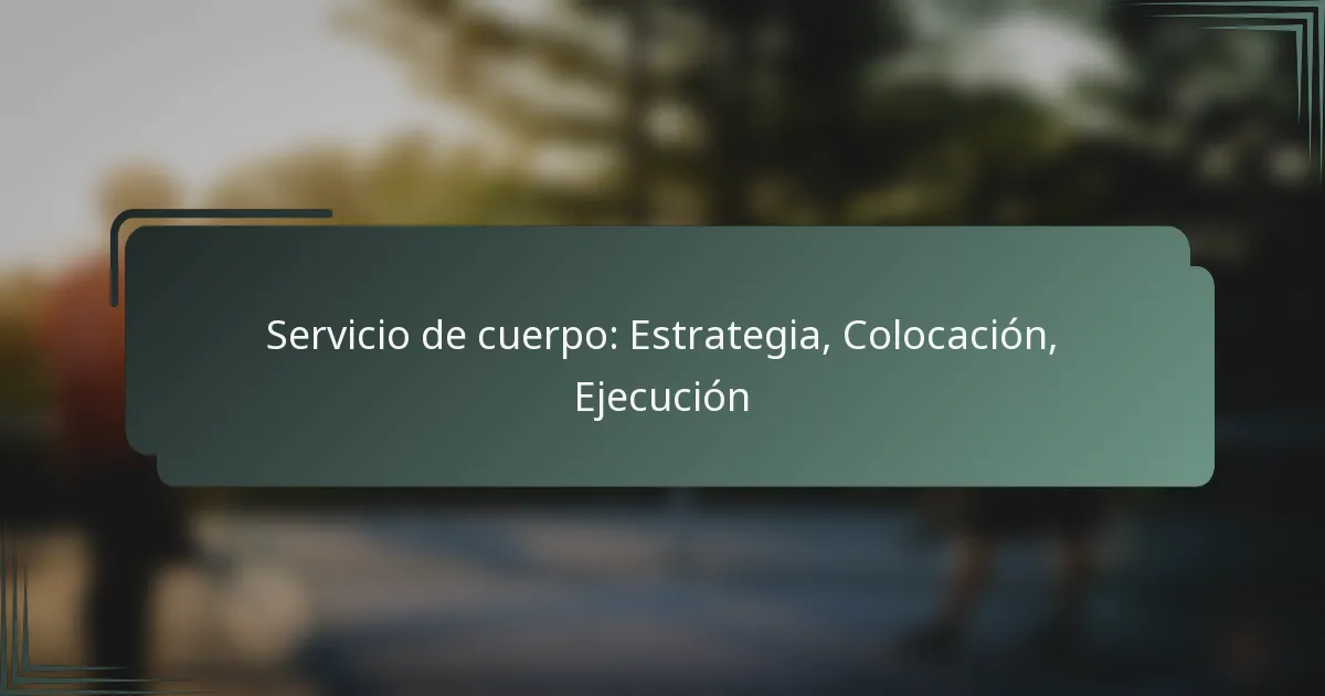 Un servicio al cuerpo es un servicio táctico de tenis dirigido al cuerpo del oponente, diseñado para interrumpir su posicionamiento y hacer que las devoluciones sean desafiantes. Al comprender sus ventajas estratégicas y analizar las debilidades del oponente, los jugadores pueden incorporar este servicio de manera efectiva en su juego. La colocación y ejecución adecuadas, incluyendo ajustes en la postura y el uso de efecto y velocidad, son cruciales para maximizar su impacto.